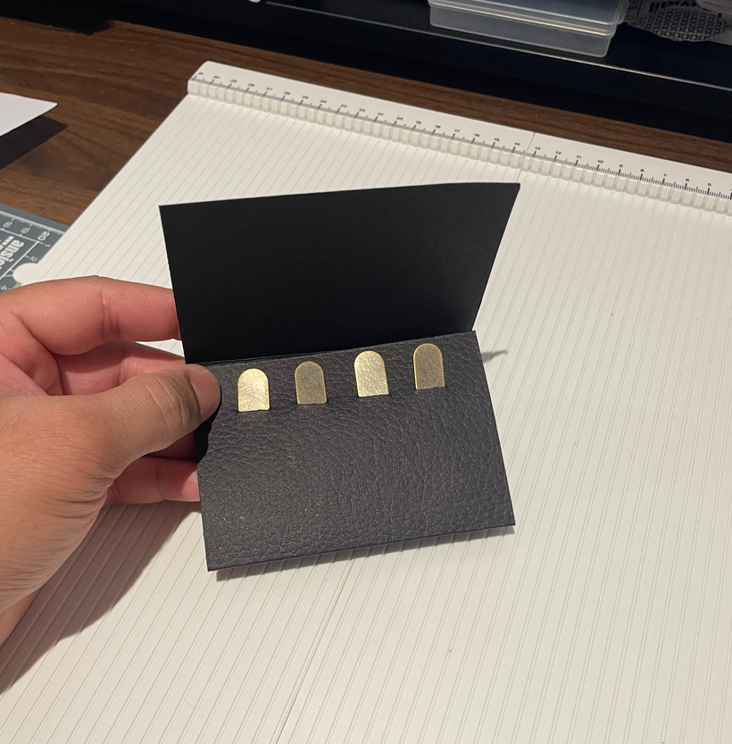 This design takes a different approach. It uses a card that holds four collar stiffeners, and this card then slides into a protective sleeve. The sleeve keeps the card enclosed, offering a slim and secure way to carry the stiffeners without adding extra bulk.